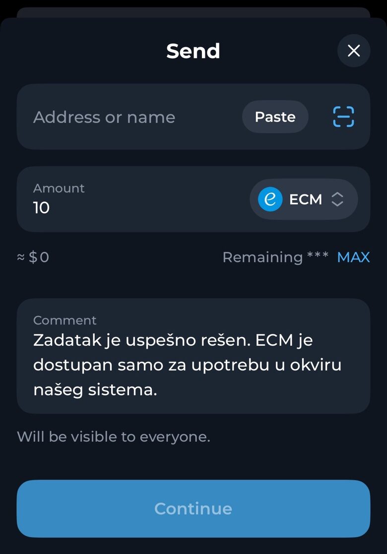 E-coin Math (ECM) transformiše učenje matematike kroz zabavne izazove, gde učenici zarađuju ECM tokene preko Tonkeeper-a. Ovim procesom, oni se upoznaju sa blockchain tehnologijom, digitalnim transakcijama i likvidnošću, sve u okviru praktičnog iskustva. Trenutno u test fazi, sistem nagrađuje aktivnost i angažovanje učenika, a tokeni se mogu koristiti virtuelno kao sredstvo za investiranje u projekte na časovima preduzetništva, stvarajući mini-ekonomiju u učionici. Ova inovacija povezuje matematiku, informatiku i ekonomiju, razvijajući veštine koje su neophodne za budućnost. Učenici ne samo da uče kako da računaju kamate, profit i rizik, već i kako da upravljaju digitalnim resursima i razumeju ekonomske principe u realnom vremenu. ECM token postaje sredstvo za aktivno učenje koje povezuje različite oblasti znanja, pripremajući učenike za svet koji sve više integriše tehnologije u svakodnevni život i poslovne procese.